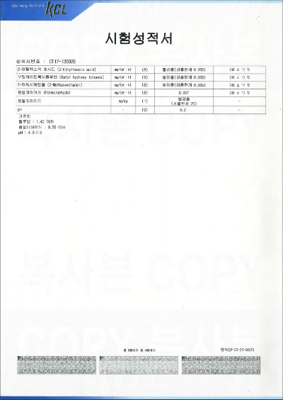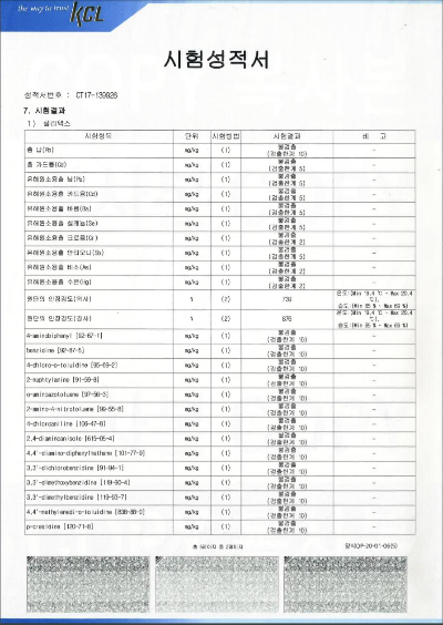 - 생산공정에서 DMF, 프탈레이트 등의 유기용제를 첨가할 필요가 없어 이러한 생체 독성 물질로부터 원천적으로 자유로우며 화학적 위해도 평가에서 안전기준을 충족했습니다.